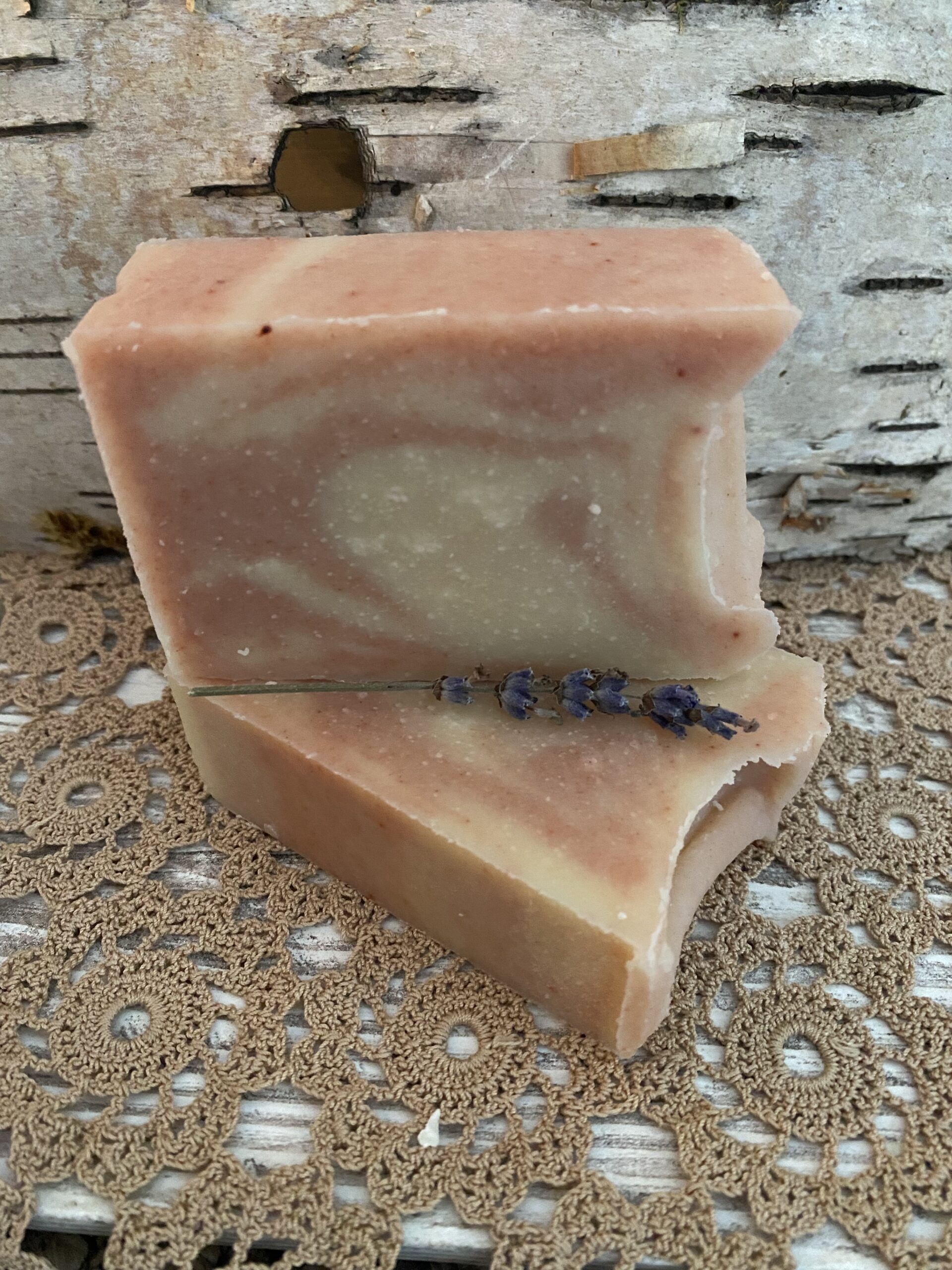 Formulated with nourishing goat milk, this bar gently cleanses while delivering deep hydration and essential nutrients to the skin. We combine cold pressed Olive oil with other oils along with Kaolin clay and Madder root to add creaminess and some color.  It’s ideal for morning showers, post-workout refreshes, or whenever you need a clean boost with a calming finish. Our Lavender and Peppermint soap is one of our top sellers.